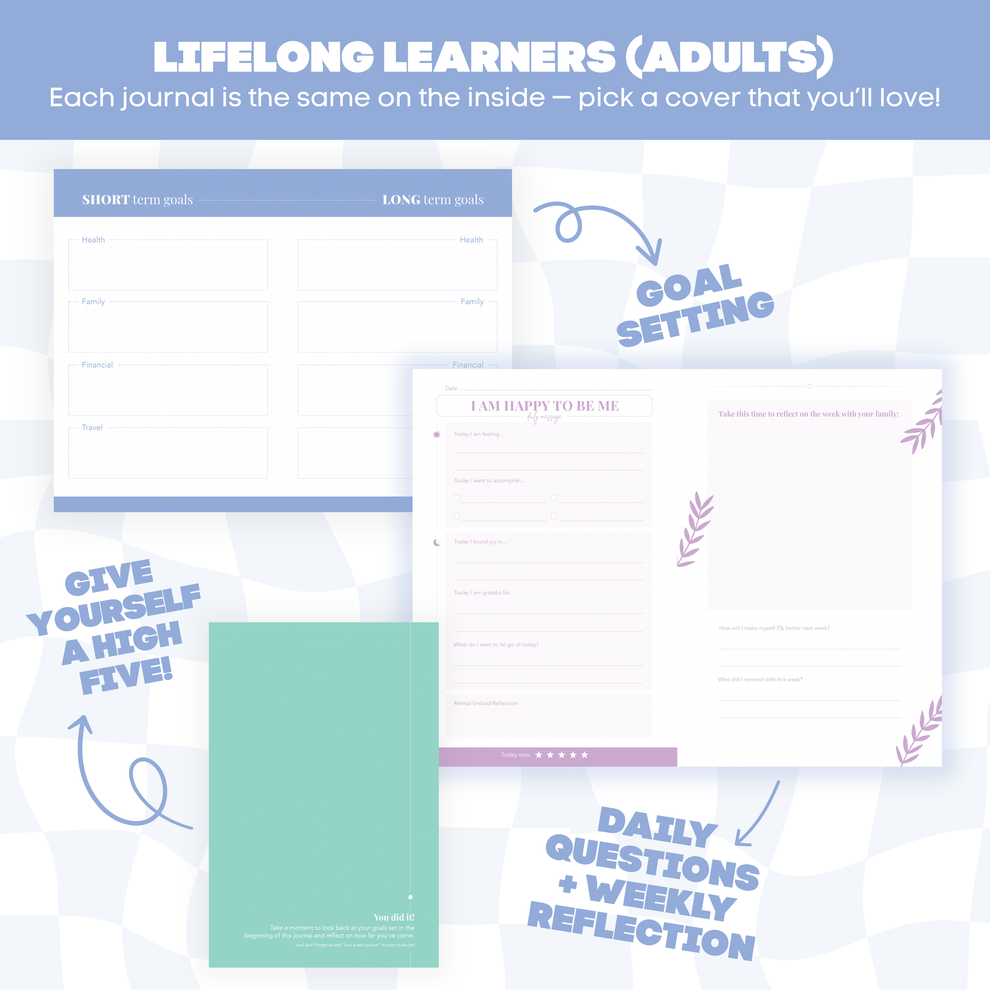 • 🎨 Covers that reflect your style—choose the one that speaks to you. Inside, the prompts are fixed and thoughtfully designed to support adult reflection.